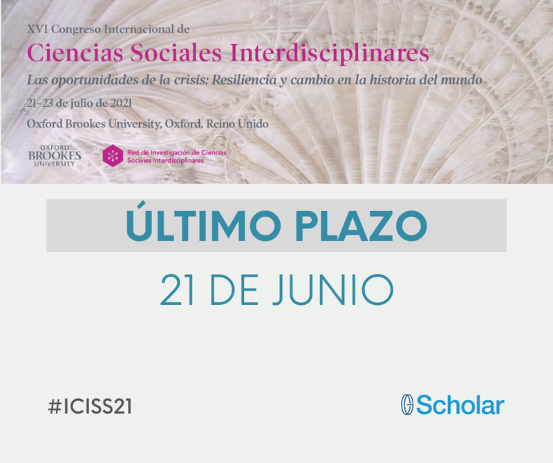 Si quiere exponer su trabajo en el XVI Congreso Internacional de Ciencias Sociales Interdisciplinares (en modalidad virtual), le informamos que el 21 de junio de 2021 es el último día para hacernos llegar su propuesta de trabajo aprovechando este botón y completar la inscripción en el Congreso 2021