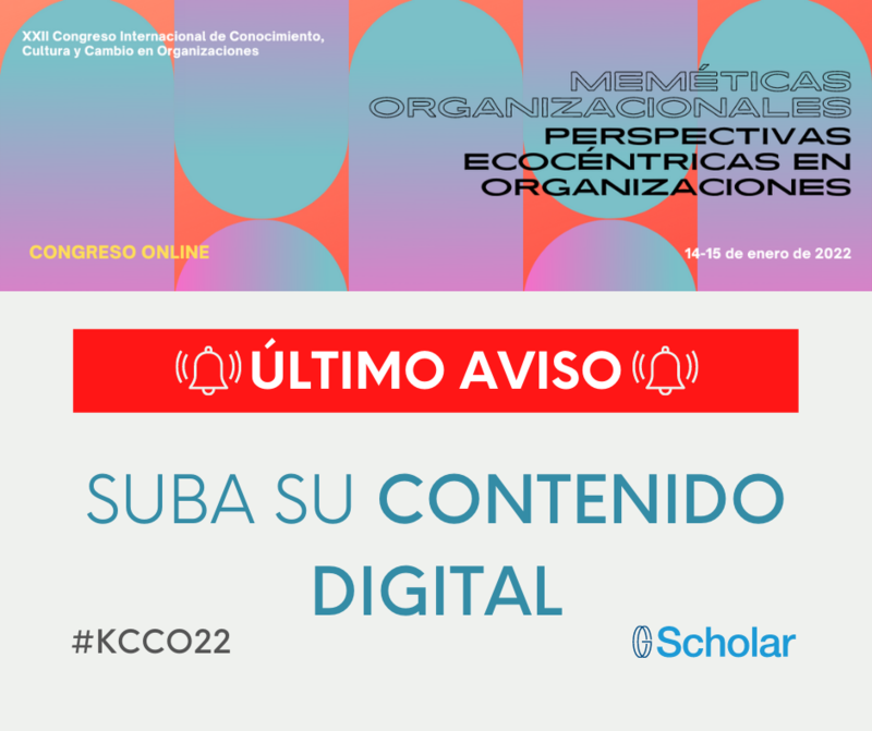 Quedan pocos días hasta el XXII Congreso Internacional sobre Conocimiento, Cultura y Cambio en las Organizaciones (14-15 de enero de 2022) que se celebrará en inglés y en español. Les recordamos a los participantes que no han subido el contenido digital que están a tiempo para hacerlo. Pueden consultar las instrucciones aquí.