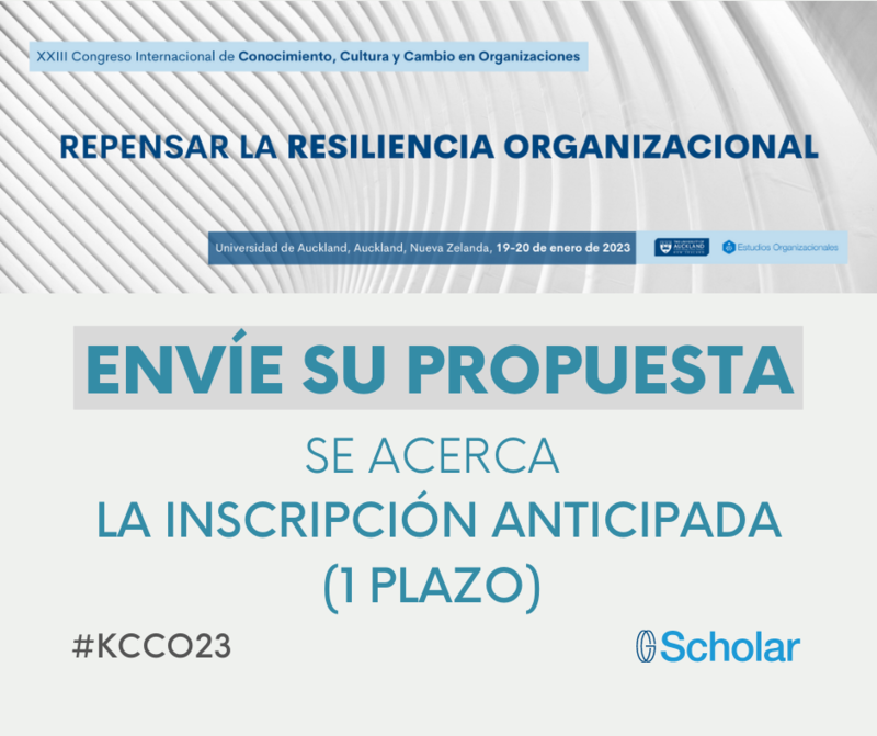 El XXIII Congreso Internacional sobre Conocimiento, Cultura y Cambio en las Organizaciones se celebrará en formato mixto (en persona y online) los días 19-20 de enero de 2022 en la Universidad de Auckland (Nueva Zelanda). Para participar en el congreso y exponer su trabajo, puede hacernos llegar su propuesta de trabajo.