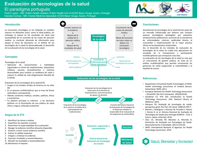 La innovación tecnológica se ha reflejado en notables avances en diferentes áreas, como la salud pública; sin embargo, la mejora en los resultados de salud está acompañada de un aumento de los costes de atención médica. La creciente demanda de información para apoyar la toma de decisiones en el ámbito de las tecnologías de la salud ha desencadenado el desarrollo de la evaluación de las tecnologías de la salud en los años sesenta y setenta en los Estados Unidos. En Portugal, desde 1999, la toma de decisiones sobre el uso y la financiación de tecnologías de la salud en el Servicio Nacional de Salud está precedida por una evaluación detallada, para garantizar la racionalidad de la respectiva contribución financiera. Todo esto comenzó con la evaluación económica de los medicamentos. En 2015 se creó el Sistema Nacional de Evaluación de Tecnologías de la Salud que, ademas de este ámbito, también es responsable de la evaluación de los programas de salud pública. Actualmente, la evaluación de las tecnologías de la salud es realizada por expertos de las áreas farmacéutica, clínica y económica de la Comisión de Evaluación de Tecnologías de la Salud y de la Dirección de Evaluación de Tecnologías de la Salud. La evaluación de las tecnologías de la salud es más que un instrumento de gestión política. Se trata de un análisis multidisciplinar que permite incrementar las ganancias de salud asegurando la sostenibilidad y la equidad de acceso.