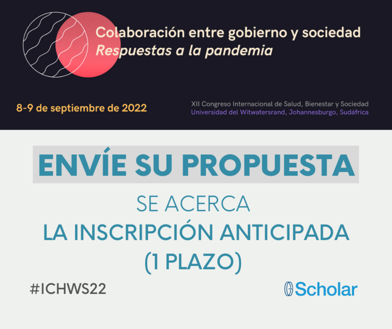 El próximo XI Congreso Internacional de Salud, Bienestar y Sociedad se celebrará los días 8-9 de septiembre de 2022 en la Universidad del Witwatersrand (Johannesburgo, Sudáfrica). Ya está abierta la convocatoria de envío de propuestas de trabajo para el Congreso de 2022