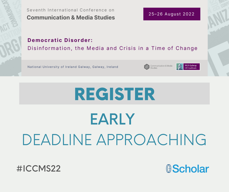 The Early Registration Deadline for the Seventh International Conference on Communication & Media Studies