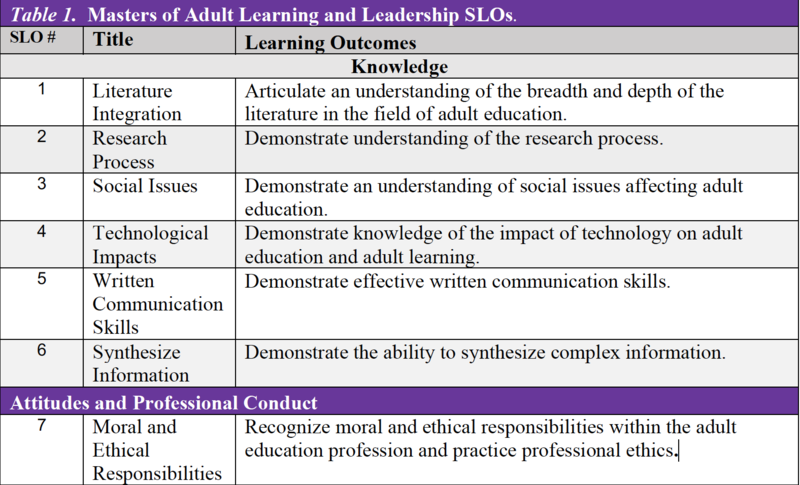 Table 1: KSU COE Masters of Adult Education and Leadership SLO's