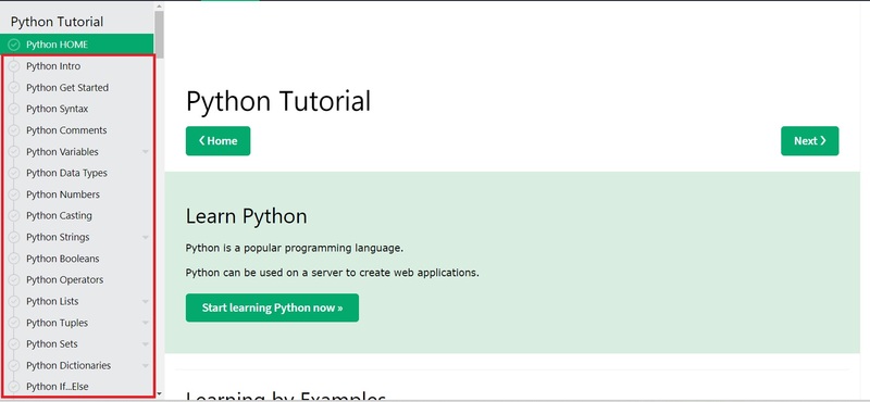 On this website: https://www.w3schools.com/python/ you can find python and immediately see how it is divided into a large number of unit (left side marked with red):
