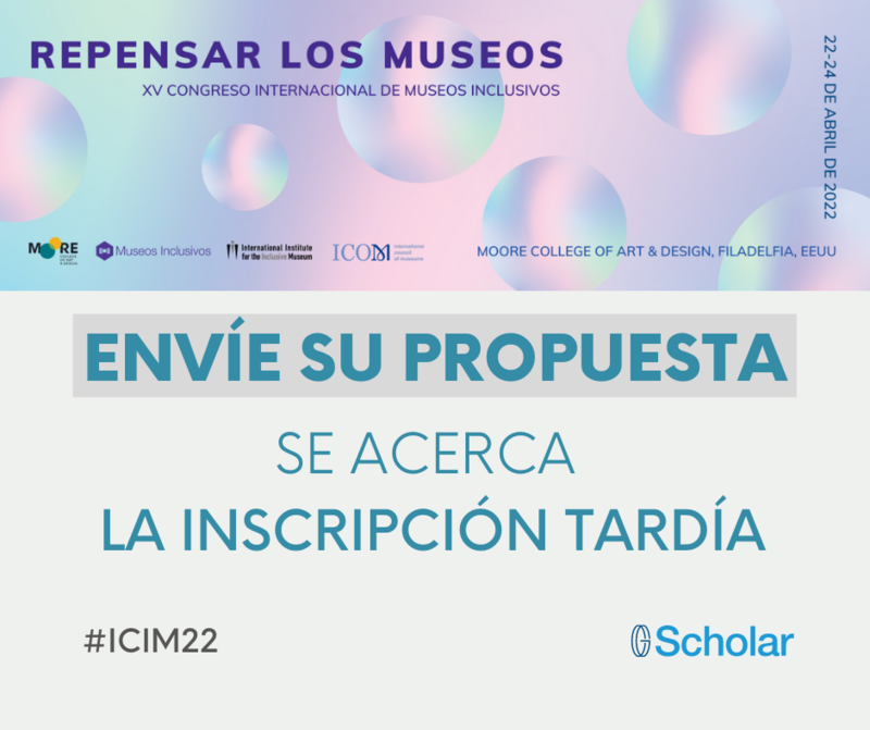 El 22 de marzo de 2022 cierra el plazo de envío de propuestas de trabajo para el próximo XV Congreso Internacional de Museos Inclusivos. Si quiere exponer su trabajo en el Congreso de 2022 en persona o en modalidad online, aproveche el siguiente enlace para hacernos llegar su propuesta de trabajo
