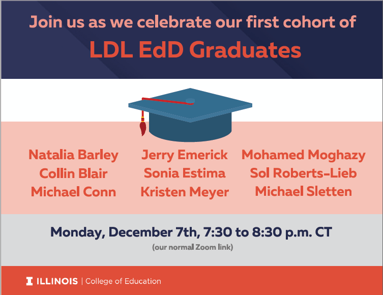 Join us on December 7th from 7:30 to 8:30 p.m. CT as we celebrate our first cohort of online EdD graduates. We are so proud of these students and all that they have accomplished.