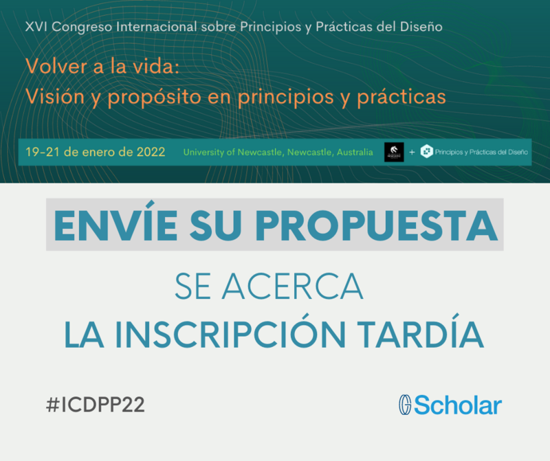 El 19 de diciembre cierra el plazo de envío de propuestas de trabajo para el XVI Congreso Internacional sobre Principios y Prácticas del Diseño que se celebrará 19-21 de enero de 2022. Si quiere exponer su trabajo en formato virtual, está a tiempo para hacernos llegar su propuesta de trabajo.