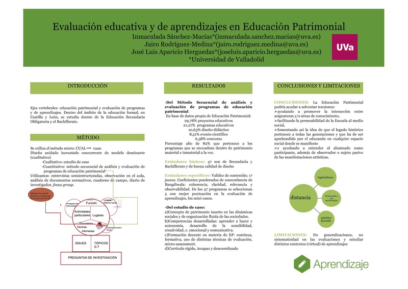 Este trabajo tiene como núcleos temáticos la educación patrimonial y la evaluación, que comparten un desarrollo histórico controvertido. La educación patrimonial evoluciona como área pujante, y la evaluación es, por definición, un concepto polisémico en sus múltiples concepciones y praxis. Se elabora una selección de programas a través de estándares, sobre educación patrimonial en Castilla y León; en segundo lugar, se hace una revisión de la evaluación de aprendizajes en alumnos de Educación Secundaria y Bachillerato. Se realiza a través del método mixto, predominando el proceso cualitativo, inspirándonos en eximios teóricos como Stake y su paradigma constructivista e interpretativo de la evaluación, a través de una serie diversificada de entrevistas bilaterales y multilaterales, observaciones en aula y cuestionarios, para validar nuestro estudio de caso. Las conclusiones se engloban en una invitación a la diversidad en varios sentidos: equilibrio de aprendizajes junto a didáctica de los mismos, sus técnicas, y evaluación multiforme. Diversidad de competencias a desarrollar por los alumnos amplificando lo dicho en el currículo. Diversidad y amplificación de la participación de todos los agentes implicados en el hecho educativo. Diversidad en las fuentes de motivación del profesorado: intrínsecas, institucionales e informales. Diversidad en los contenidos de educación patrimonial y profundización en la transversalidad, pero compaginándola con dar carta de naturaleza al área como asignatura con horas significativas de docencia.