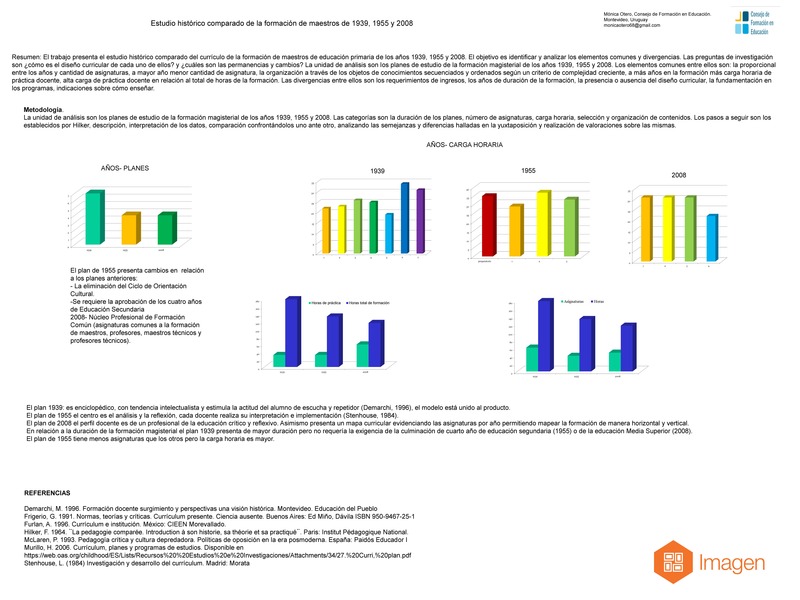 La Ley Nº 18437 del 2008 establece la creación del Instituto Universitario de Educación, por ello la formación docente se encuentra en un proceso de cambio. Ésto nos hace reflexionar sobre la formación del maestro, entendiendo a este como un discurso específico de saber que supone una doble articulación en la estructura y en el acontecimiento. La dimensión estructural del objeto del saber-conocimiento se conforma en redes de sentido que han sido originadas históricamente, derivadas de la ciencia, que se modifican y reestructuran con la intencionalidad de ser legitimadas y enseñadas. En esta investigación buscamos establecer las bases interrogativas para revisar, deconstruir y coconstruir nuestras prácticas como instituciones formadoras de maestros, generando marcos teóricos referentes. Para ello analizaremos los programas de los planes de estudio de la formación magisterial de los años 1939, 1955 y 2008 (plan de estudios vigente). El objetivo es identificar y analizar las presencias, elementos comunes y divergencias en los programas de las asignaturas de los planes de estudio de formación de grado de maestros de educación primaria de los años 1939, 1955 y 2008. Con el fin de examinar comprensiva y críticamente los planes de estudio de 1939, 1955 y 2008, realizaremos un análisis de cada uno de ellos de manera independiente y luego simultáneamente. Se parte de categorías previas, atendiendo a los objetivos y al marco teórico de referencia. Las categorías son duración de los planes, número de asignaturas, selección y organización de contenidos.