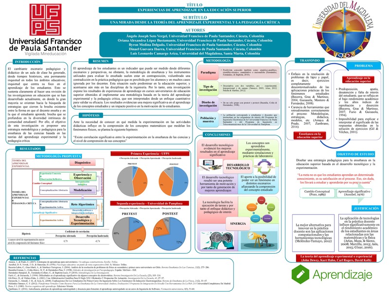 El aprendizaje de los estudiantes es un indicador que puede ser medido desde diferentes escenarios y perspectivas; no obstante, la metodología de enseñanza y los instrumentos utilizados para evaluar lo enseñado suelen estar en contraposición, vislumbrado una contradicción en la práctica pedagógica que es percibida por los alumnos y en muchos casos ignorada por los docentes. Esta situación suele predominar en la educación superior, y acentuarse aún más en las disciplinas de la ingeniería. Esta investigación expone los resultados de experiencias de aprendizaje en cursos universitarios de educación superior obtenidos al implementar una metodología basada en la teoría del aprendizaje experimental y la pedagogía crítica, que son interpretados desde un enfoque cuantitativo para validar su eficacia. Los resultados evidenciaron una mejora significativa en el aprendizaje de los conceptos estudiados y un impacto positivo en la motivación de los estudiantes.