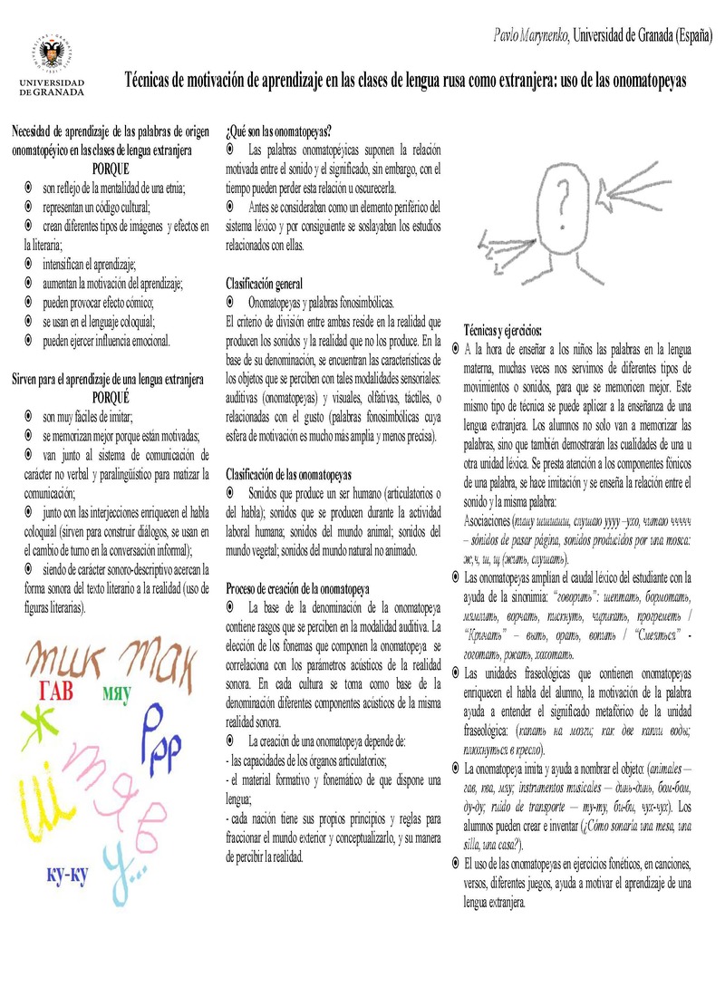 Técnicas de motivación de aprendizaje en las clases de lengua rusa como extranjera: Uso de onomatopeyas