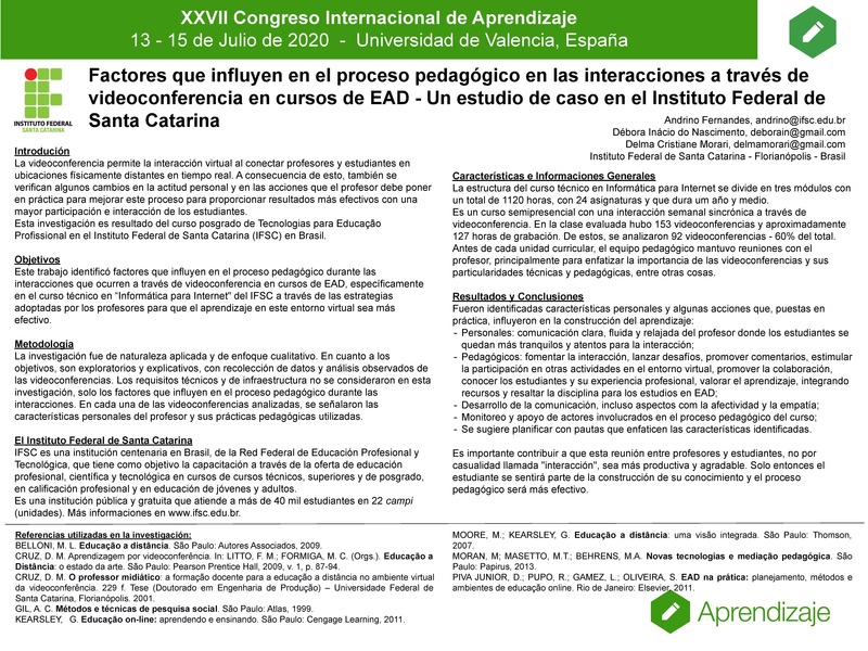 Factores que influyen en el proceso pedagógico en las interacciones a través de videoconferencia en cursos de EAD: Un estudio de caso en el Instituto Federal de Santa Catarina