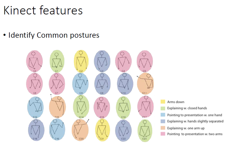 The Microsoft Kinect sensor for example, collects information about a person’s body joints and helps to describe human movement using non-verbal characteristics. possibilities of combining sensors with data mining techniques.