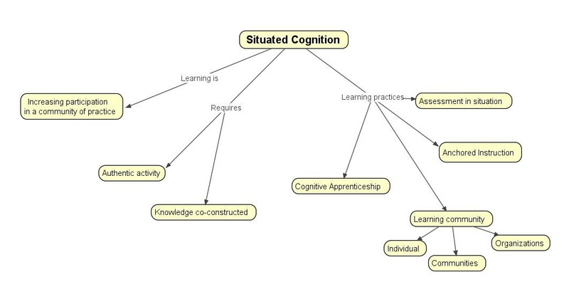 A concept introduced in the discussion of collective intelligence is that of situated cognition. Unfamiliar with this construct, I sought to glean more understanding of this theory introduced by Brown, Collins, and Duguid (1989). Defined as a theory “that people’s knowledge is embedded in the activity, context, and culture in which it was learned”, situated cognition is also referred to as “situated learning” (Theories of Learning. Com, n.d.). Being more familiar with concepts of social learning (e.g., vicarious learning) from the work of Albert Bandura, I was intrigued by this new-to-me concept and its current day application to the classroom.