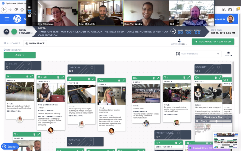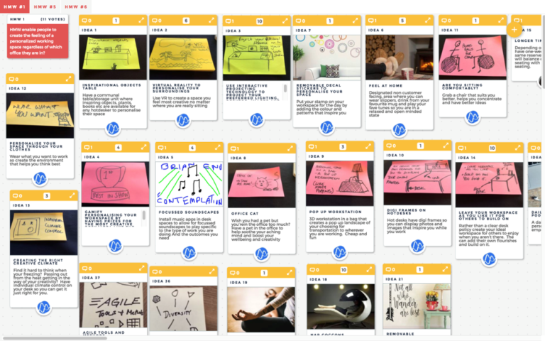 Moreover, design thinking workshops usually provide the opportunity for teams to give peer to peer feedback on developed ideas in order to help each team member and group to lift the level of their performance. The digital format speeds up the development process and allows all team members to communicate (e.g. chat) and produce artifacts at the same time.