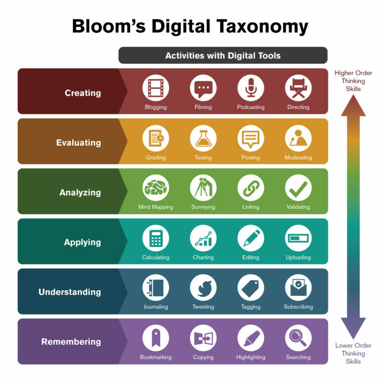 Bloom’s Digital Taxonomy emerged as educators have thought of transformative ways to connect digital tools and reflective thinking. Bloom’s Digital Taxonomy informs instructors of “how to use technology and digital tools to facilitate student learning experiences and outcomes” (Sneed, 2019, para. 3).