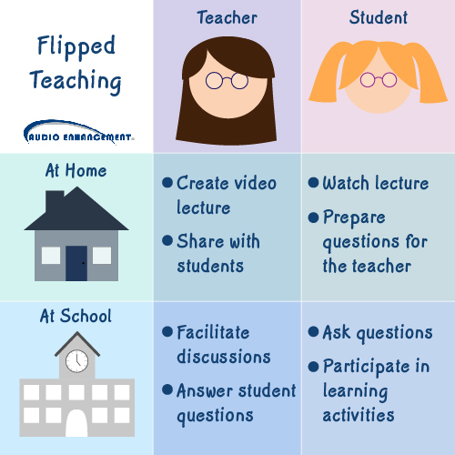 Here is a nice infographic from audioenhancement.com that I think sums up what I understand to be a flipped classroom model: