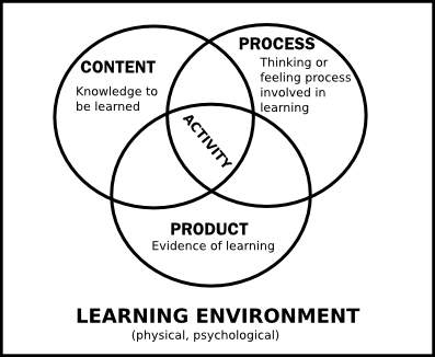 The image below adapted Tomlinson & Maker's (1982) system, wherein they proposed 29 strategies or principles to guide differentiated curriculum into four elements: content, process, product, and learning environment. These principles are flexible in such a way that educators may modify activities that will be more appropriate to highly able learners. (http://possibilitiesforlearning.com/curriculum-differentiation/)