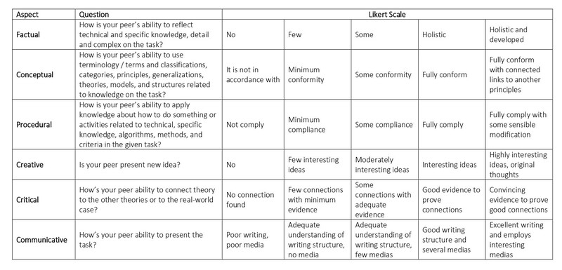 2. Apply self-reflection with the same criteria for peer-to-peer feedback and compare both scores to support metacognition one's awareness of his/her capability to learn.