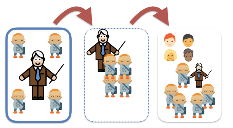 However, this image is not meant to indicate in anyway the limitation of the role of the teacher, only their relationship with the students (as co-creators of their learning), but more the change from the 'font of all knowledge' to a facilitator and guide. Indeed in inquiry-based learning this is an essential role if the inquiry model is to be successful and students are to achieve their final goal. It is only through rigourous guideance and scaffolding (which may include some elements of socratic teaching), especially through the guided questioning process, that such models can be successful (Kirschner, Sweller, Clark, 2006).