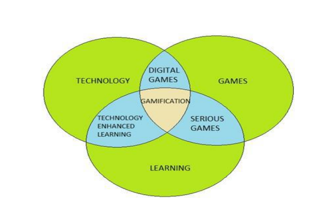 ووفقا لبرنسكي (2001, Prensky ) ترتبط الأبحاث حول تطبيقات التلعيب والتعلم بمجالات بحثية أخرى، وهي التكنولوجيا، والألعاب، والتعلم، فعند تفاعل هذه المكونات مع بعضها تظهر عناصر فرعية أكثر دقة، وهي: الألعاب الرقمية، والألعاب الجادة، والتكنولوجياالمعززة للتعليم، وفي الشكل التالي تتضح العناصر المرتبطة بمفهوم التلعيب.