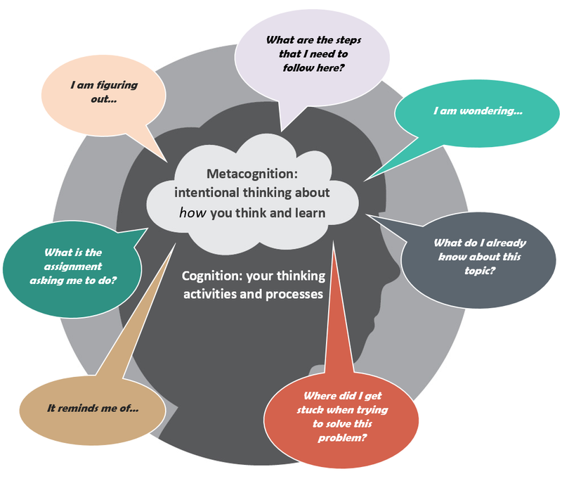 Metacognitive approach to supporting student learning involves promoting student metacognition – teaching students how to think about how they think and how they approach learning. Why is this important? It makes thinking and learning visible to students.