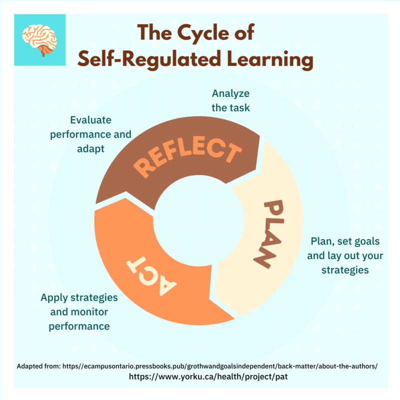 "Self-regulated learning (SRL) includes the cognitive, metacognitive, behavioral, motivational, and emotional/affective aspects of learning."https://ecampusontario.pressbooks.pub/paths/chapter/working-through-the-cycle-of-self-regulated-learning/