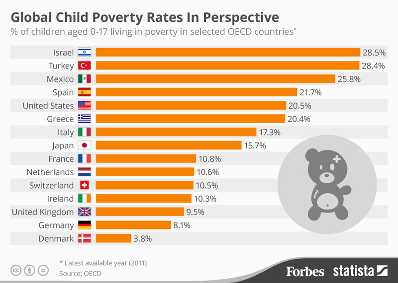 Evidently the poverty data available is rather controversial. Some sites criticize how data is calculated by other sites. Possibly this site is more reliable since it is from the OECD and published here by Forbes, a magazine dealing with business and economics. See: