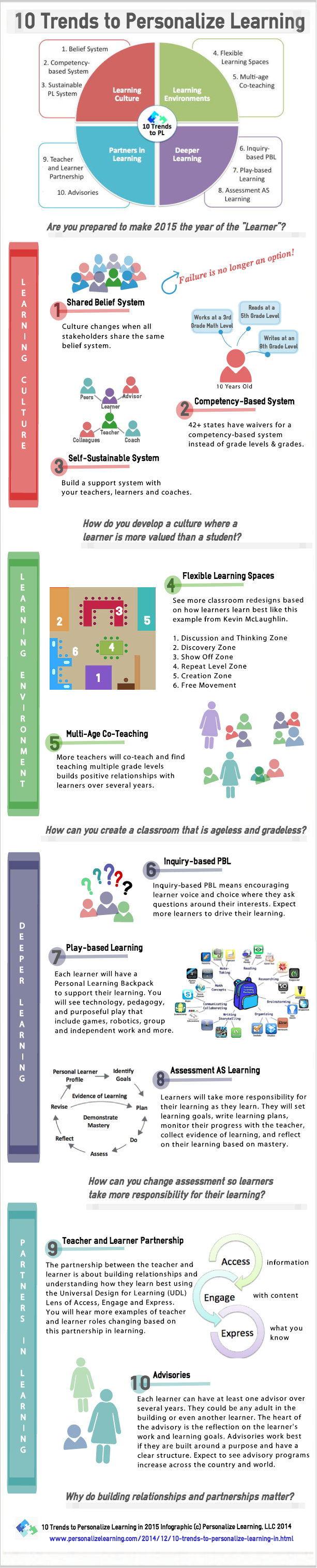 However, personalized learning is not the exclusive prerogative e-learning environments. The infographic below gives a round picture of a personalized learning environment in a face-to-face classroom.