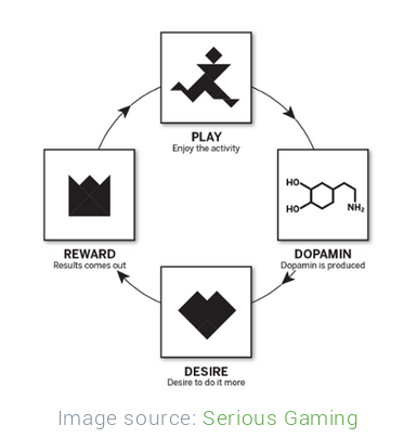 “[D]opamine, which is released when a person experiences pleasure,” writes Gabe Zichermann in the book Gamification by Design, “...increases motivation to continue doing the thing that gave pleasure. This is how gaming rewards work.”