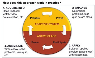 Models which integrate both an online adaptive learning method along with a face-to-face component show a lot of promise, such the case of Arizona State University’s use of CogBooks adaptive coursewar as away to build foundational skills, which are then applied and assimilated in a face to face course.