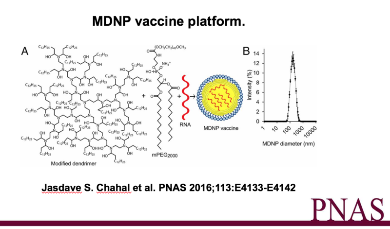 Chahal JS, Khan OF, et al. (2016) Dendrimer-RNA nanoparticles generate protective immunity against lethal Ebola, H1N1 influenza, and Toxoplasma gondii challenges with a single dose. Proc Natl Acad Sci U S A 113(29):E4133-42. doi: 10.1073/pnas.1600299113.
