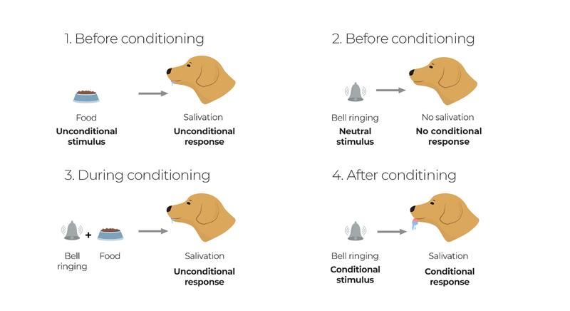 A classical conditioning is a type of learning in which a neutral stimulus is paired with a stimulus that elicits a reflex reaction. The best example of classical conditioning is Ivan Pavlov's experiment with dogs. Pavlov wanted to investigate inherited reflexes related to salivation when a dog tastes food. He concluded that the stimulus from the environment affected the dog's reaction.
