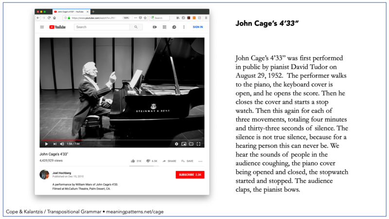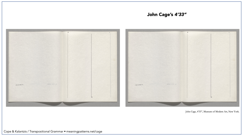 - Cope, Bill and Mary Kalantzis, 2020, Making Sense: Reference, Agency and Structure in a Grammar of Multimodal Meaning, Cambridge UK: Cambridge University Press, pp. 99-101. [§ markers are cross-references to other sections in this book and the companion volume (AS); footnotes are in this book.]