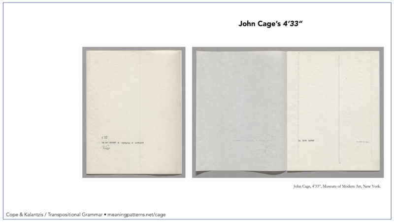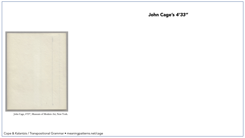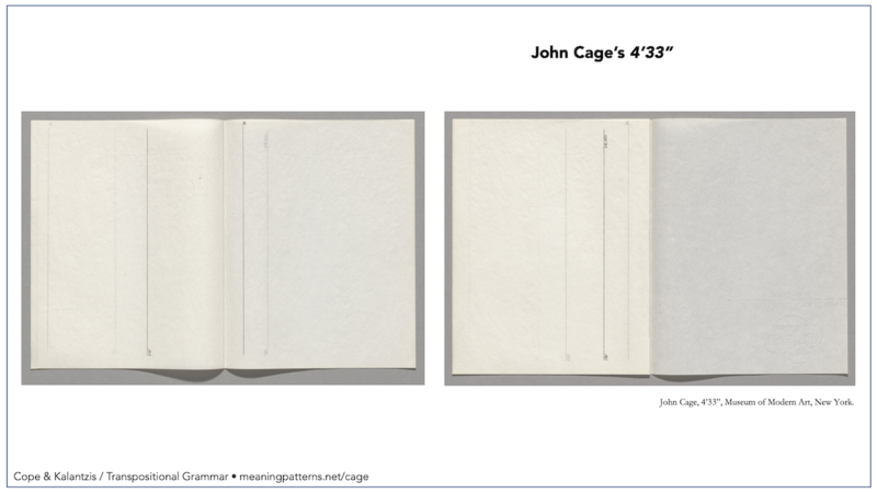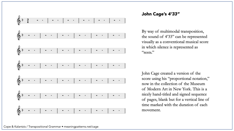 By way of multimodal transposition, the sound of 4ʹ33″ can be represented visually as a conventional musical score in which silence is represented as “rests.”