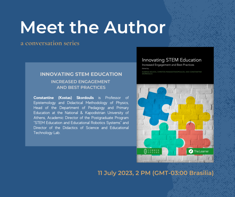 Our next conversation will be with Constantine D. Skordoulis (Professor of Epistemology and Didactical Methodology of Physics, Head of the Department of Pedagogy and Primary Education at the National & Kapodistrian University of Athens), author of "Innovating STEM Education: Increased Engagement and Best Practices" on 11 July 2023, 2 PM (GMT-03:00 Brasilia).