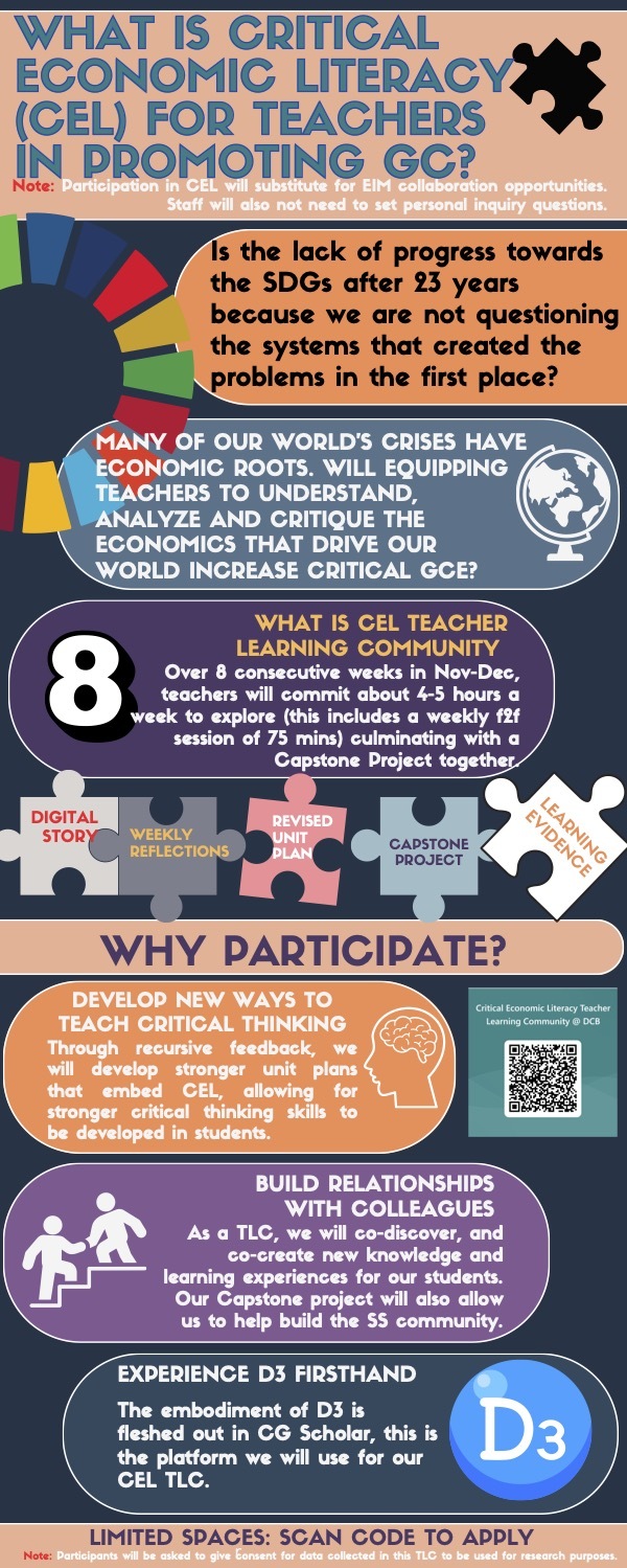 I have also created this infographic to recruit teachers for the CEL Teacher Leasrning Community (TLC) course (the research project) with a sign up date marked for the 23rd Oct. I am grateful for the support I have gotten so far from school to run and explore this with teachers.