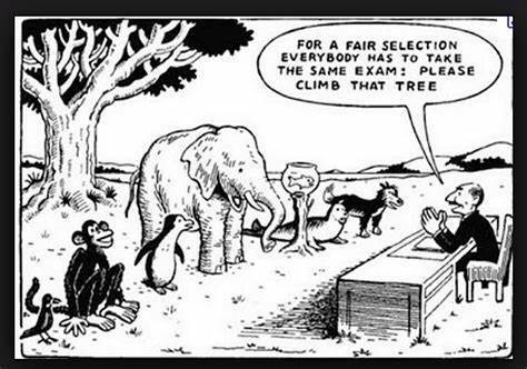 Pett, J. (n.d.). For a fair selection, everybody has to take the same exam: Please climb that tree [Editorial cartoon]. Retrieved from. https://annakolm.pl/276/fair-selection/