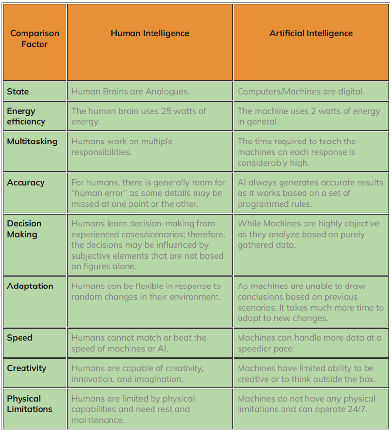 Naukri.com. (n.d.). [Image showing differences between artificial intelligence and human intelligence]. In Differences between artificial intelligence and human intelligence. Naukri.com. https://www.naukri.com/code360/library/differences-between-artificial-intelligence-and-human-intelligence