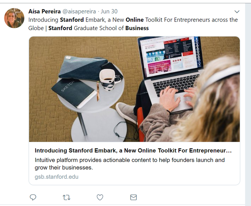 The affordance of ubiquitous learning blurs the boundaries between types of learning in the workplace; presenting the informal learner with a plethora of options and perhaps enabling to become more intentional about their learning. Instead of just being reactive and seeking mentoring or advice, the informal learner can now embark on a self-initiated journey of inductive learning and reflection (Manuti et al., 2015). An example would be a female employee who was not selected for a leadership role in her organisation, sees an advertisement in her Twitter feed for a Stanford Business online entrepreneurship program (see Figure 1 below) and enrols with the aim of becoming more of an ‘intrapreneur’ in her current workplace, or even to launch her own business.