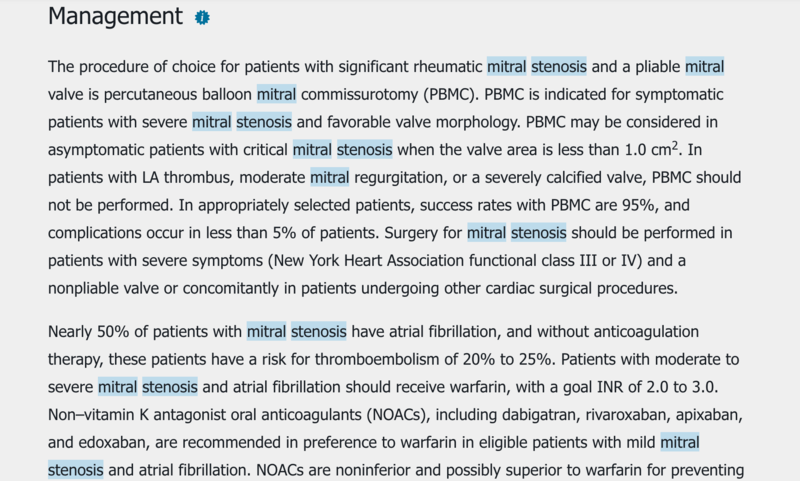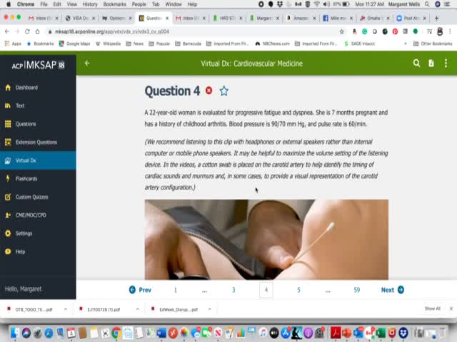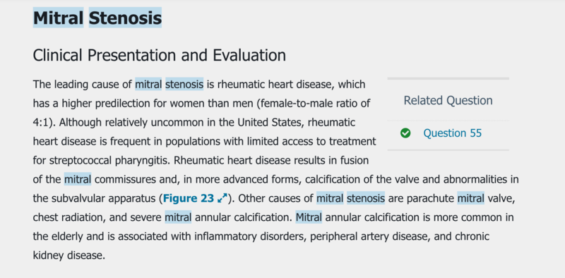 Related self-assessment multiple-choice questions allow learners to test themselves, and detailed critiques of the correct and incorrect answers help reinforce learning. Finally, learners can access image-based clinical scenarios to help them make a diagnosis. In the video below, an audio file depicting heart sounds indicative of mitral stenosis are presented, along with a video of the pulse associated with mitral stenosis: