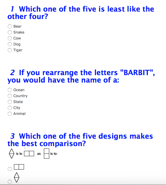 Many of the questions relied on having prior knowledge or background information. You couldn't unscramble many of the words to find the name of a country or city if you didn't have knowledge of these things before hand. Being able to answer Paris or Germany does not make one person a genius over another. It just means that person has had experience with that information.