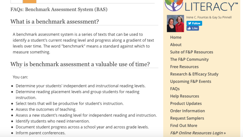 A benchmark test I do prefer to use in my classroom is the Fountas and Pinnell reading assessment. The test is administered by the the teacher, one on one, with the student. It gives me immediate feedback about my students' strengths and weaknesses in reading. It allows me to adapt my instruction to best fit the needs of the students.