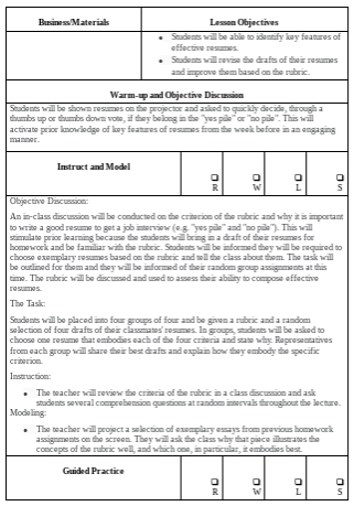 Update 4: Authentic Pedagogy - Resume Writing Lesson Plan