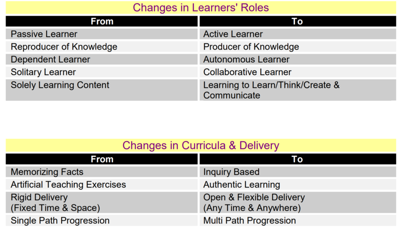Voogt and Pelgrum(2005) suggest that students move to different forms of educational experiences: